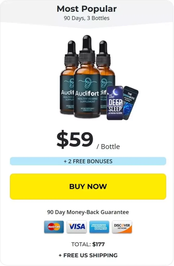 Formulated for efficiency and safety, Audifort offers long-term support for ear and hearing health. Considering its proven results, natural composition, and official purchase benefits, Audifort is definitely worth trying.