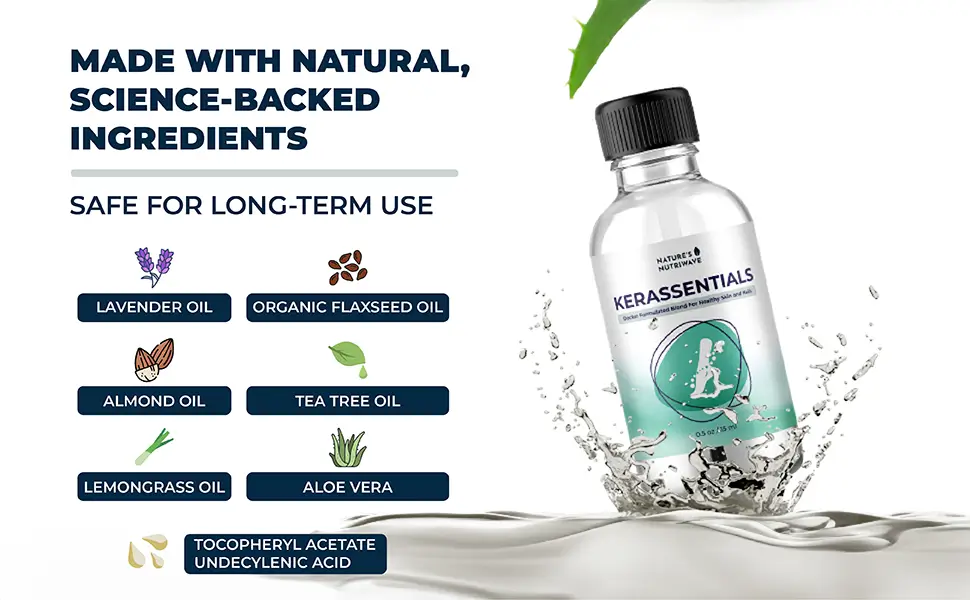 Kerassentials is formulated with natural, clinically tested ingredients that are safe for topical use and non-toxic to the skin. It supports nail and skin health without causing harmful effects. The product is manufactured in an FDA-registered facility following strict GMP quality standards to ensure purity, safety, and effectiveness for daily application.